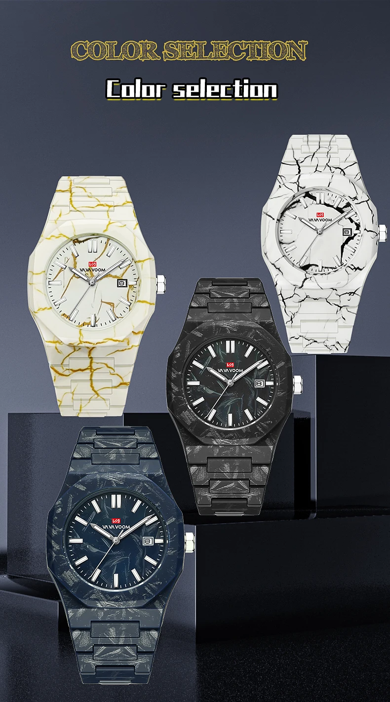 Business Mens Watch Original Quartz Movement 40mm Marble Pattern Dial Luxury Night Light Sports Wrist Watch