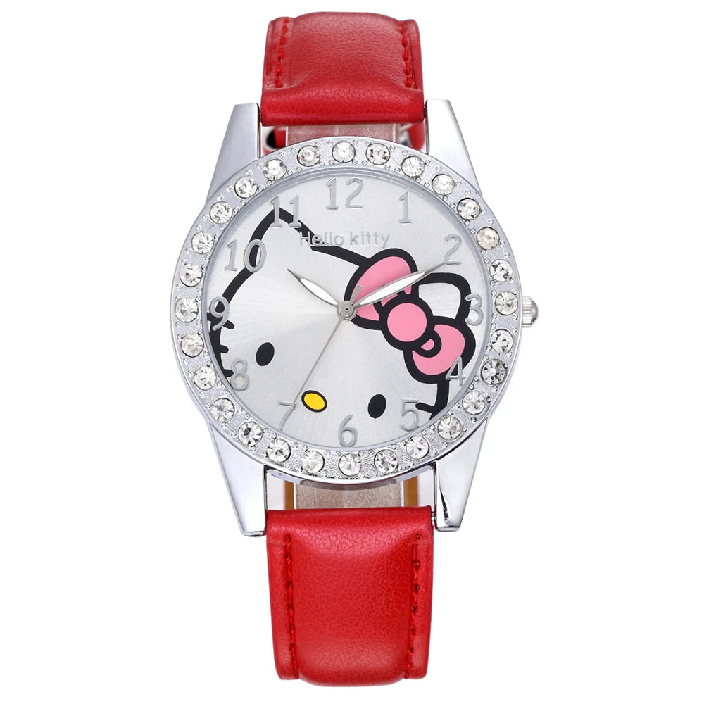 Lovely Cartoon Girls Kids Watches Women Fashion Rhinestone Children's Quartz Watches Casual Leather Band Wristwatch Clock Gifts