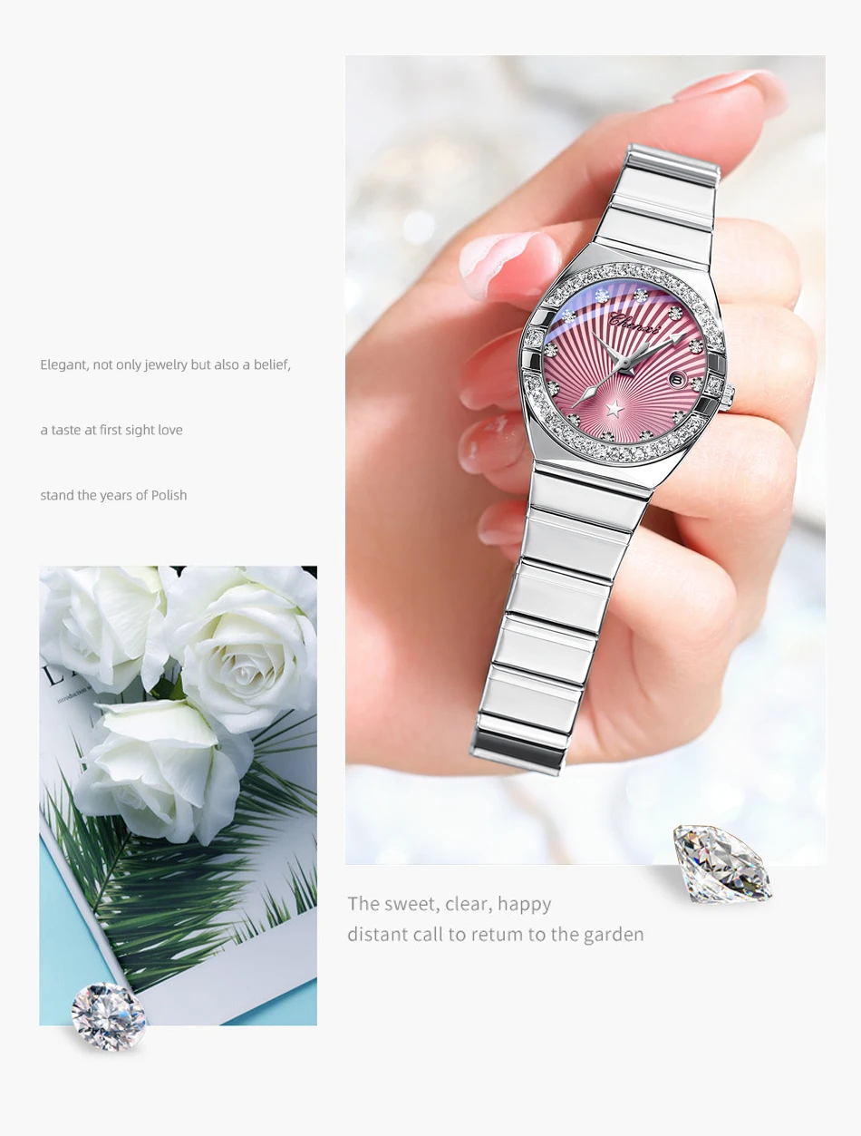 New Women Watch Round Quartz Diamond-Studded Wristwatch Date Luminous Waterproof Stainless Steel Watch Ladies Gift Relojes Para