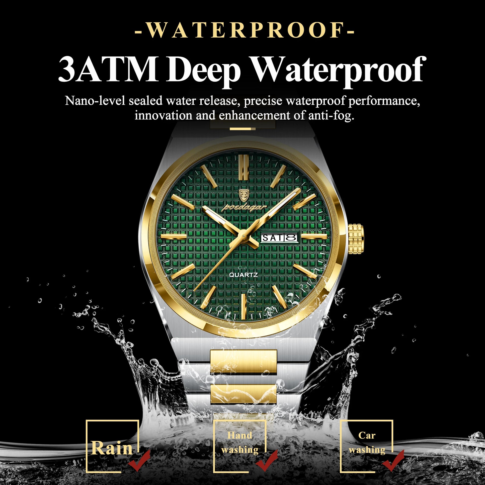 POEDAGAR Luxury Men Watch Date Week Waterproof Luminous Stainless Steel Watch For Man Casual Quartz Men's Watches Male Sport+Box