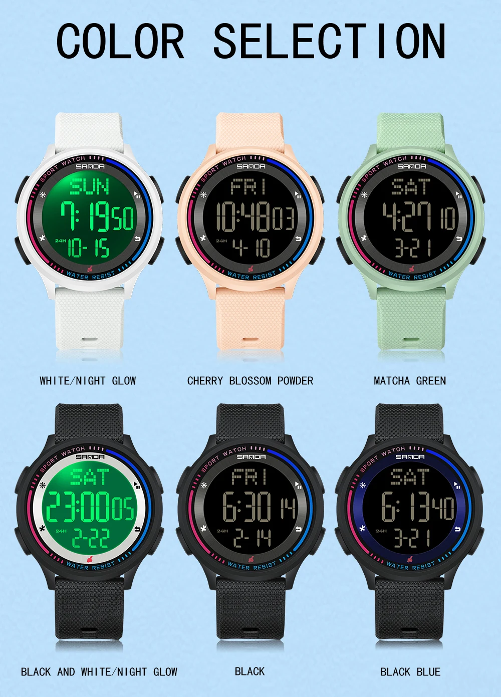 SANDA Fashion Digital Movement Teenager Students Hand Clock Trendy Outdoor Sports Water Resistant Mode Wrist Stop Children Watch